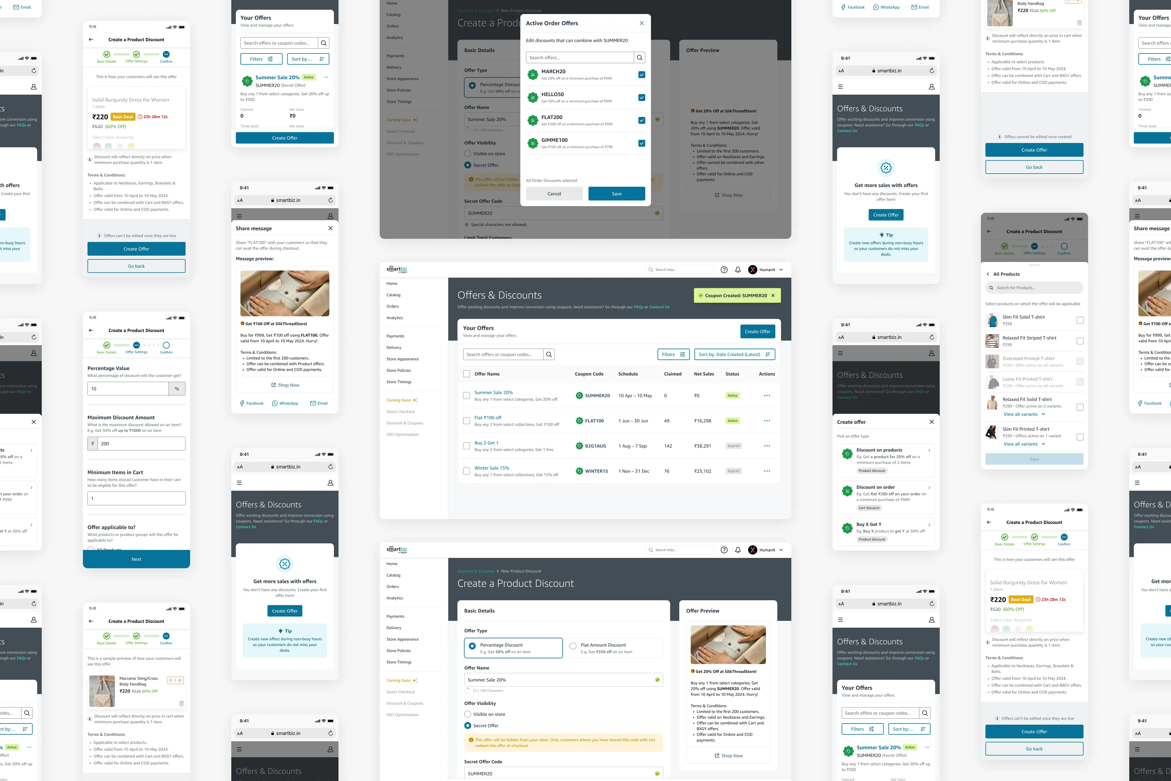 One of the primary goals of our sellers was to create "running promotions", which helped improve conversion rates on their websites. Existing systems on other platforms felt complex and time-consuming. Considering these sellers are setting up an online store for the first time, we needed to create a way for them to drive these promotions easily and effectively.